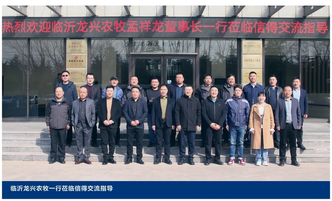 2月23日,临沂龙兴农牧·信得交流会在信得科技诸城工业园圆满举行。临沂龙兴农牧公司董事长孟祥龙、董事长助理杨莉莉、财务总监彭思鹏、临沂龙兴农牧发展有限公司总经理戴本峰、临沂盛海食品有限公司总经理孟祥伟、山东兴辰农牧有限公司总经理王志成以及各公司的原料、技术、生产和业务部门高管一行十七人到信得科技参观指导,并就双方的深度合作事宜进行沟通研讨,成功签署战略合作协议。