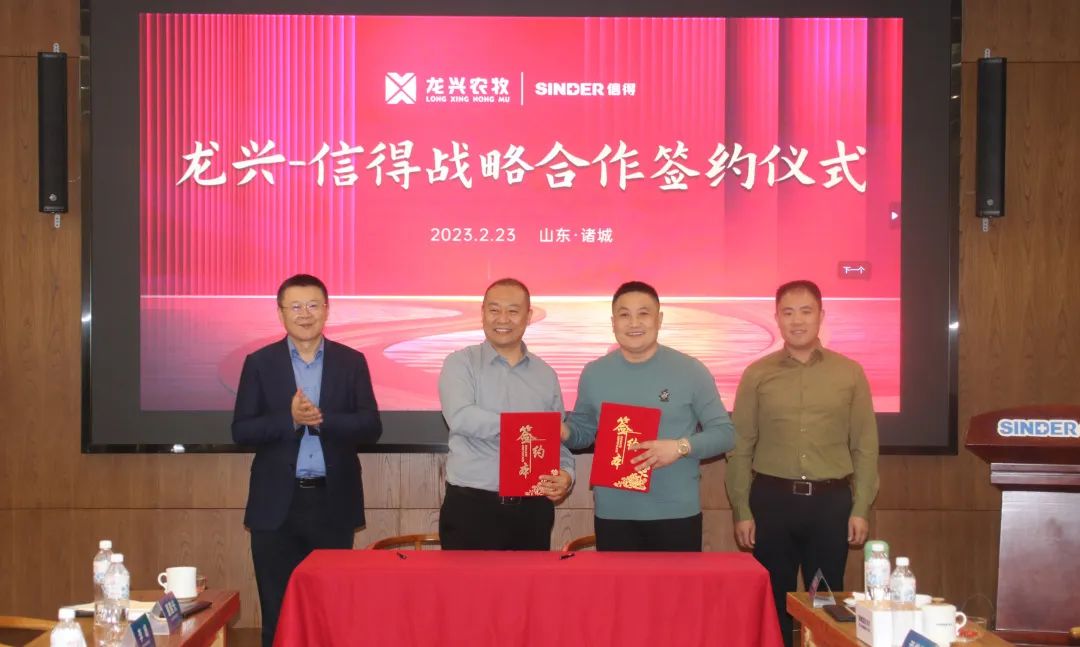 通过实地考察、深入交流,增进了龙兴农牧与信得科技的了解和信任,夯实了彼此深度合作基石。在与会各位领导的见证下,信得科技公司家禽山东事业部总经理辛海业与龙兴农牧公司总经理戴本峰,分别代表公司签署《龙兴—信得战略合作协议》。