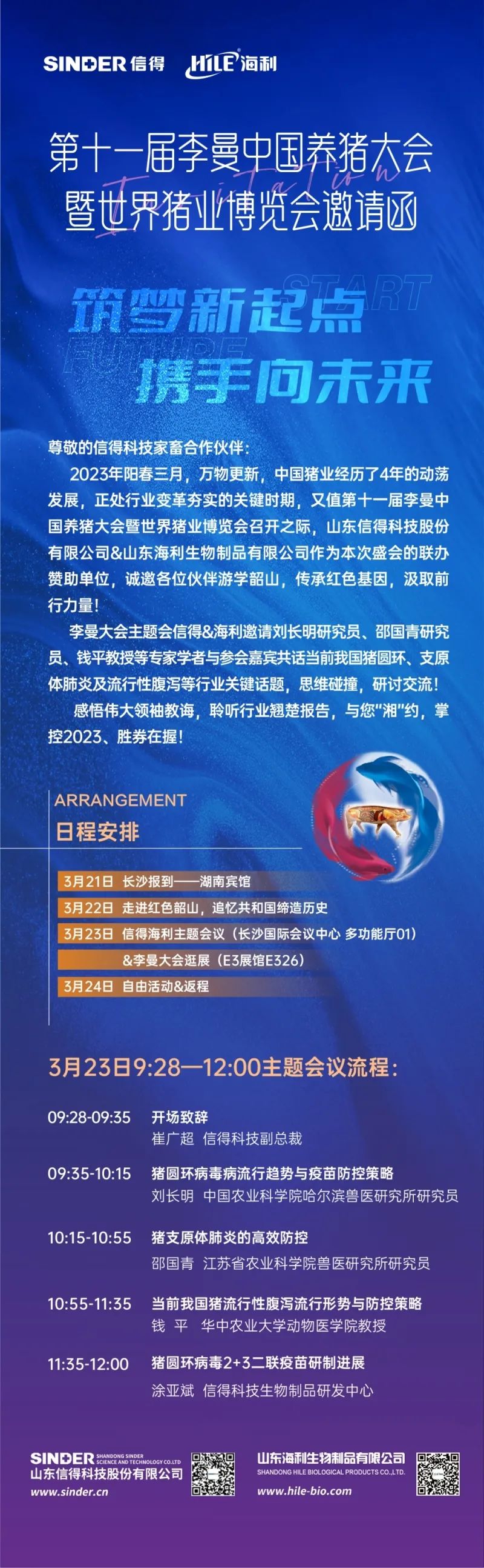 阳春三月,万物更新。中国猪业经历了4年的动荡发展,正处行业变革夯实的关键时期,又值第十一届李曼中国养猪大会暨世界猪业博览会召开之际,米兰官方网页版&山东海利生物制品有限公司作为本次盛会的联办赞助单位,2023年3月21日,诚邀各位伙伴游学韶山,传承红色基因,汲取前行力量!